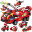 Camiones de bomberos 6 piezas en 1 / Bloques de construcción / Helicóptero de rescate